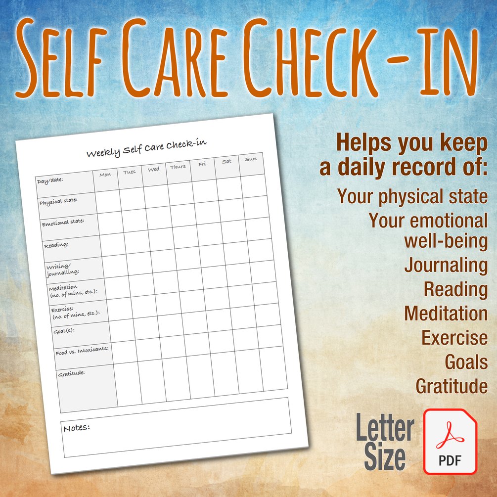 If you're trying to improve your emotional and physical well-being. A self care check-in can really help you to monitor your moods, improvements, and physical / mental condition.